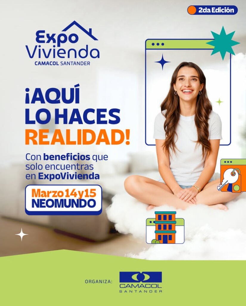 El próximo sábado 14 y domingo 15 de marzo en el centro de convenciones de Neomundo, Bucaramanga se reunirán las empresas edificadoras para presentar una gran variedad de ofertas inmobilarias y lanzamientos recientes. De igual manera, se contará con la presencia de entidades y aliados estratégicos que facilitarán el acceso a oportunidades de financiación de vivienda.